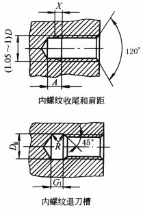 内螺纹的收尾、肩距和退刀槽(GB/T 3—1997) mm |