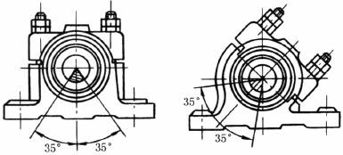 (1)轴承座的载荷方向应该在轴承中心线左、右35°的范围内,如下图所示。图中阴影部分是允许承受的径向载荷的范围