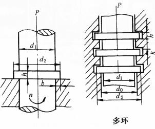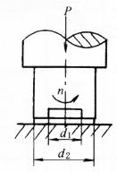 式中P—— 轴承承受的轴向力,N d2—— 轴承环形工作面外径,mm d1—— 轴承环形工作面内径,mm Z—— 环的数目 pp—— 许用压强,MPa,见表止推滑动轴承的pp、(pv)p值 |