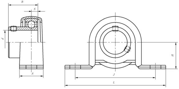 带冲压立式座偏心套外球面球轴承(UEPP型) 符号含义与应用: UB— 一端平头带顶丝外球面球轴承 UE— 一端平头带偏心套外球面球轴承 PP—冲压立式座 具有与深沟球轴承相同的载荷能力,调心性能较好,有密封装置,结构紧凑,使用方便。 |