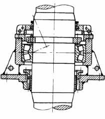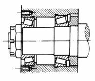 一般采用带有开口销的冠状螺母、带翅垫圈、止动垫圈调整固定(使用背螺母来锁紧轴颈螺母是不可取的,因为调整好的轴承游隙会因螺纹的啮合间隙变化而改变),使支承带有少量预过盈 |