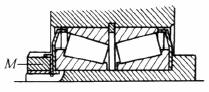 用螺母M来紧定调整圆锥滚子轴套,使带有必要的预过盈 |