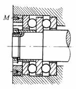用螺母M进行调整。调整后轴承应有相当的预过盈,使工作中卸载的一列球仍能可靠地沿着沟底运动 |