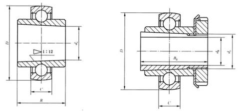 有圆锥孔外球面球轴承(UK型) 带紧定套外球面球轴承(UK+H型) 带立式座紧定套外球面球轴承(UKP+H型) 符号意义与应用 UK—带圈锥孔外球面球轴承 H—紧定套 P—铸造立式座 具有与深沟球轴承相同的载荷能力,调心性能较好,有密封装置,结构紧凑,使用方便。 UK型、UK+H型的尺寸与基本额定载荷符合GB/T 3882。 |