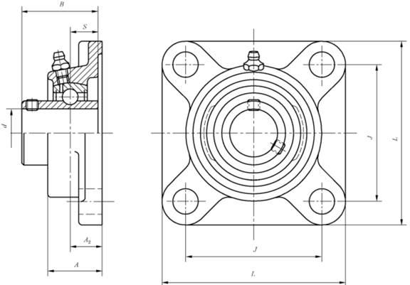 带偏心套外球面球轴承(UEL型) 带方形座偏心套外球面球轴承(UELFU型) 符号含义与应用 FU—铸造方形座 UC—带顶丝外球面球轴承 UEL—带偏心套外球面球轴承 具有与深沟球轴承相同的载荷能力,调心性能较好,有密封装置,结构紧凑,使用方便。 |