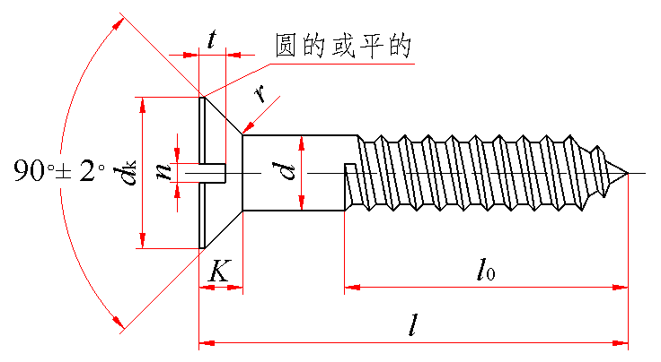 标记示例: 公称直径10mm、长度100mm、材料为Q215、不经表面处理的开槽沉头木螺钉的标记: 木螺钉 GB 100 10×100 |