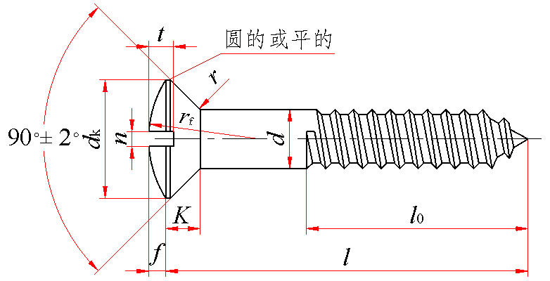 标记示例: 公称直径10mm、长度100mm、材料为Q215、不经表面处理的开槽半沉头木螺钉的标记: 木螺钉 GB 101 10×100 |