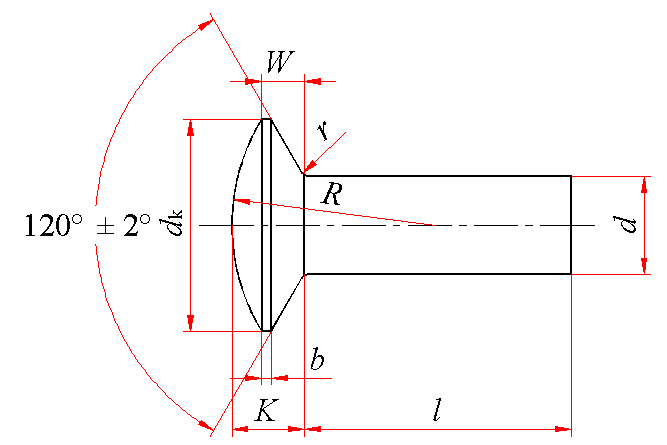 标记示例: 公称直径为d=6mm、公称长度l=30mm、材料为BL2、不经表面处理的120°半沉头铆钉的标记: 铆钉 GB/T 1012 6×30 |