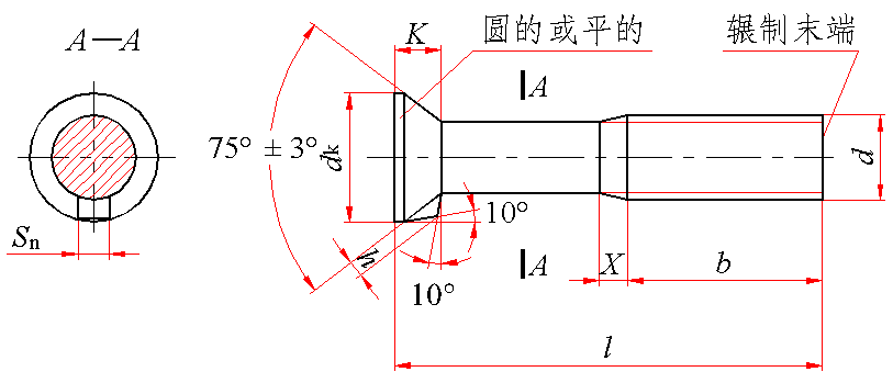 螺纹末端按GB/T 2规定;无螺纹部分杆径约等于螺纹中径或螺纹大径 | |||||||||||