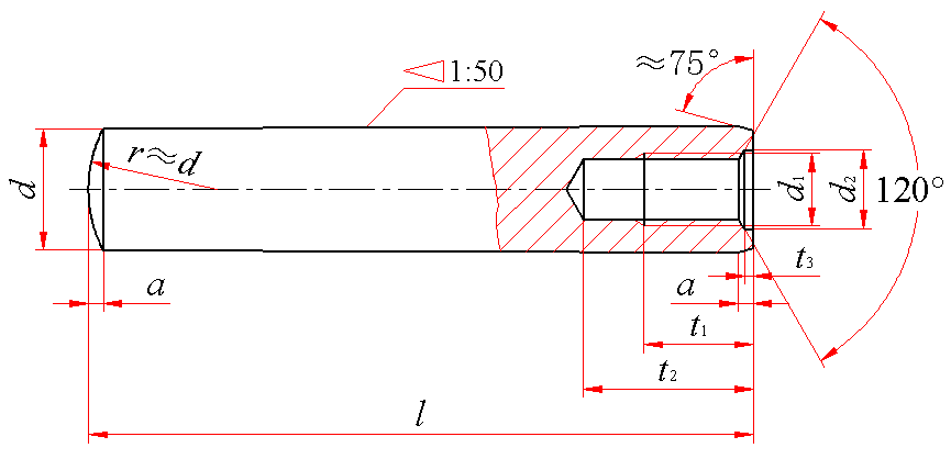 A型(磨削):锥面表面粗糙度Ra=0.8μm B型(切削或冷镦):锥面表面粗糙度Ra=3.2μm |