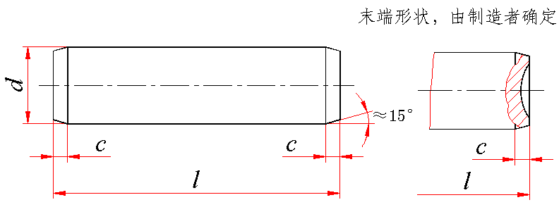 标记示例 公称直径d=6 mm、公差为m6、公称长度l=30 mm、材料为钢、普通淬火(A型)、表面氧化处理的圆柱销的标记: 销 GB/T 119.2 6×30 公称直径d=6 mm、公差为m6、公称长度l=30 mm、材料为C1组马氏体不锈钢、表面简单处理的圆柱销的标记: 销 GB/T 119.2 6×30-C1 |