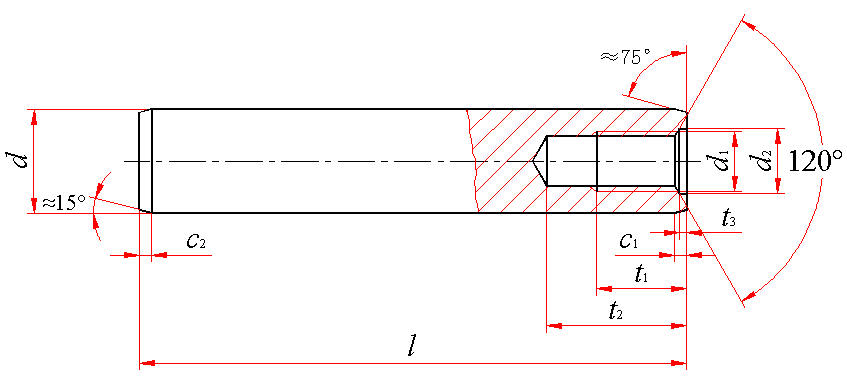标记示例: 公称直径d=6 mm、公差为m6、公称长度l=30 mm、材料为钢、不经淬火、不经表面处理的内螺纹圆柱销的标记: 销 GB/T 120.1 6×30 公称直径d=6 mm、公差为m6、公称长度l=30 mm、材料为A1组奥氏体不锈钢、表面简单处理的内螺纹圆柱销的标记: 销 GB/T 120.1 6×30-A1 |