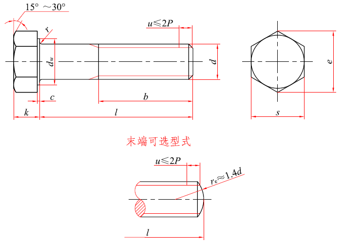 标记示例: 螺纹规格d =M20、公称长度 l =100mm、性能等级为10.9S 级的钢结构用高强度大六角头螺栓的标记: 螺栓 GB/T 1288 M20×100 螺纹规格d =M20、公称长度 l =100mm、性能等级为8.8S 级的钢结构用高强度大六角头螺栓的标记: 螺栓 GB/T 1288 M20×100-8.8S |