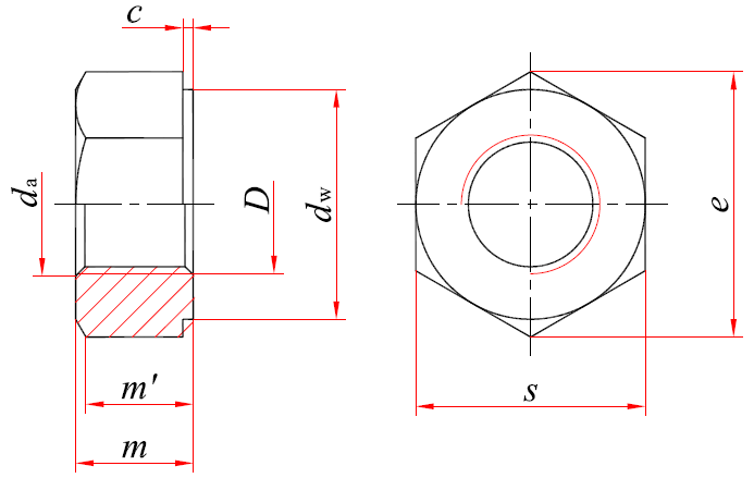 标记示例: 螺纹规格D=M20、性能等级为10H级的钢结构用高强度大六角螺母的标记: 螺母 GB/T 1229 M20 螺纹规格D=M20、性能等级为8H级的钢结构用高强度大六角螺母的标记: 螺母 GB/T 1229 M20-8 H |