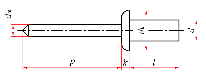 标记示例: 公称直径d=4.8mm、公称长度l=11mm、钉体由铝(Al)制造、钉芯由铝合金(AlA)制造、性能等级为06级的封闭型平圆头抽芯铆钉的标记: 抽芯铆钉 GB/T 12615.3 4.8×11 |