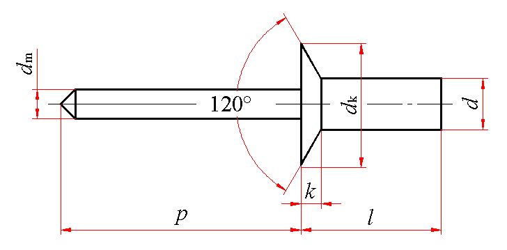 标记示例: 公称直径d=4mm、公称长度l=12.5mm、钉体由铝合金(AlA)制造、钉芯由钢(St)制造、性能等级为11级的封闭型沉头抽芯铆钉的标记: 抽芯铆钉 GB/T 12616.1 4×12.5 |