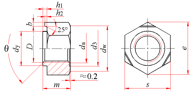 标记示例: 螺纹规格D=M10、材料为含碳量不大于0.25%的钢、不经表面处理的焊接六角螺母的标记: 螺母 GB/T 13681 M10 |