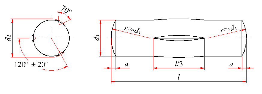 槽销 中部槽长为1/3全长(GB/T 13829.3—2004) mm |
