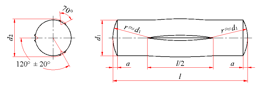 标记示例: 公称直径 d1=6mm、公称长度 l=50mm、材料为碳钢、硬度为125~245 HV30、不经表面处理的中部槽长为1/2全长的槽销的标记: 销 GB/T 13829.4 6×50 公称直径 d1=6mm、公称长度 l=50mm、材料为A1组奥氏体不锈钢、硬度为210~280 HV30、表面简单处理的中部槽长1/2全长的槽销的标记: 销 GB/T 13829.4 6×50-A1 |