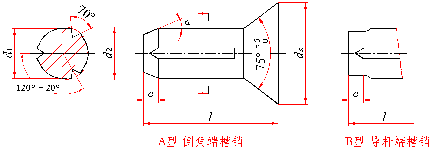 沉头槽销(GB/T 13829.9—2004) mm |