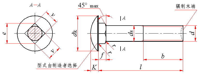 标记示例: 螺纹规格d=M12、公称长度l=80mm、性能等级为4.8级、不经表面处理的大半圆头方颈螺栓的标记: 螺栓 GB/T 14 M12×80 | |||||||||||