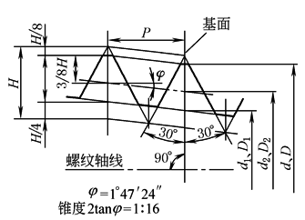 米制密封螺纹的基本尺寸(GB/T 1415—2008) | ||||||||