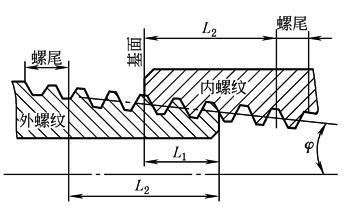 ① 对圆锥螺纹,不同轴向位置平面内的螺纹直径数值是不同的。要注意各直径的轴向位置。 ② 基准距离有两种型式:标准型和短型。两种基准距离分别对应两种型式的最小有效螺纹长度。标准型基准距离L1和标准型最小有效螺纹长度L2适用于由圆锥内螺纹与圆锥外螺纹组成的“锥/锥”配合螺纹;短型基准距离L1短和短型最小有效螺纹长度L2短适用于由圆柱内螺纹与圆锥外螺纹组成的“柱/锥”配合螺纹。选择时要注意两种配合形式对应两组不同的基准距离和最小有效螺纹长度,避免选择错误。 ③测量中径锥角的测量跨度为L1。 注:圆柱内螺纹中径公差带为5H,其公差值应符合GB/T 197的规定。 | ||||||||