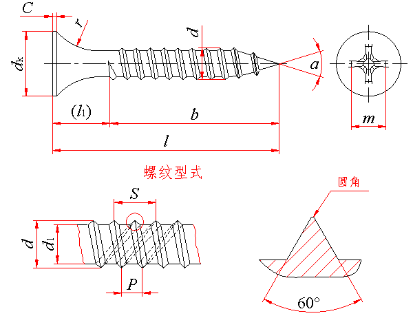 墙板自攻螺钉(GB/T 14210—1993) mm |