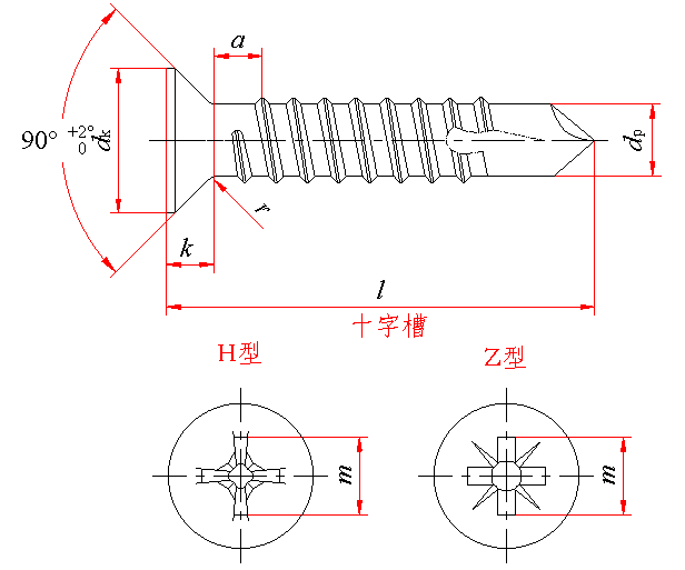 标记示例: 螺纹规格ST3.5、公称长度l=16mm、H型槽、镀锌钝化的十字槽沉头自钻自攻螺钉的标记: 自攻螺钉 GB/T 15856.2 ST3.5×16 |