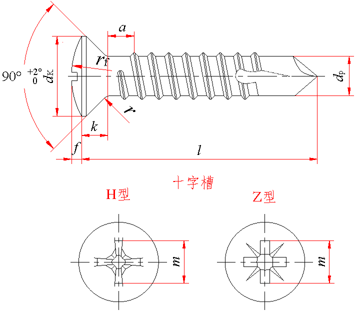 标记示例: 螺纹规格ST3.5、公称长度l=16mm、H型槽、镀锌钝化的十字槽半沉头自钻自攻螺钉的标记: 自攻螺钉 GB/T 15856.3 ST3.5×16 |