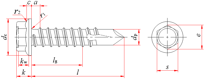 六角法兰面自钻自攻螺钉(GB/T 15856.4—2002) mm |