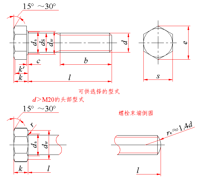 栓接结构用大六角头螺栓 短螺纹长度 C级 8.8和10.9级(GB/T 18230.2—2000) mm |