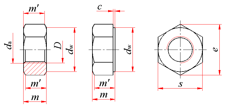 栓接结构用1型六角螺母 热浸镀锌(加大攻丝尺寸) A和B级 5.6和B级(GB/T 18230.6—2000) mm |