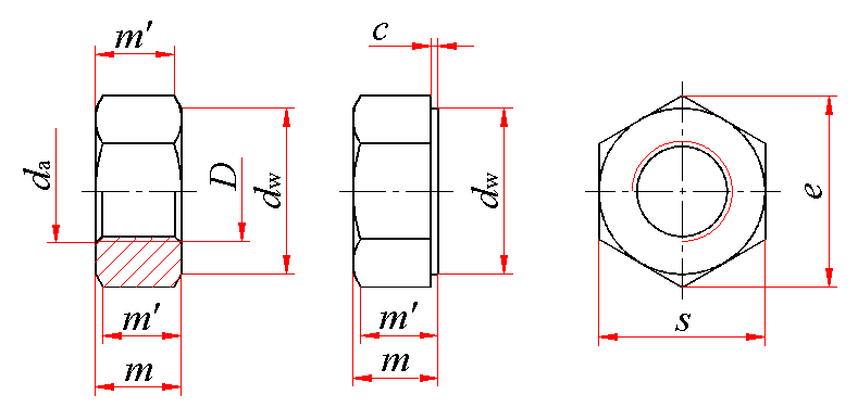栓接结构用2型六角螺母 热浸镀锌(加大攻丝尺寸) A级 9级(GB/T 18230.7—2000) mm |