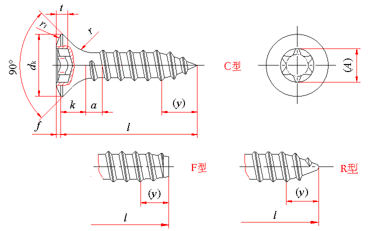 标记示例: 螺纹规格ST3.5、公称长度 l =16mm、镀锌的 C 型内六角花形半沉头自攻螺钉的标记: 自攻螺钉 GB/T 2670.3 ST3.5×16 |