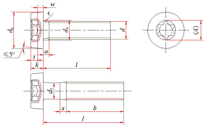 标记记示例: 螺纹规格d=M5、公称长度 l=20mm、性能等级为4.8级、不经表面处理的A级内六角花形低圆柱头螺钉的标记: 螺钉 GB/T 2671.1 M5×20 |