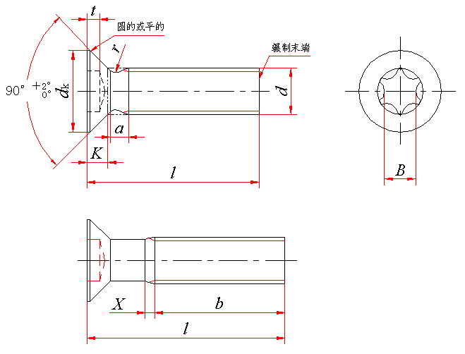标记示例: 螺纹规格d=M8、公称长度l=30mm、性能等级为4.8级、不经表面处理的A级内六角花形沉头螺钉的标记: 螺钉 GB/T 2673 M8×30 |