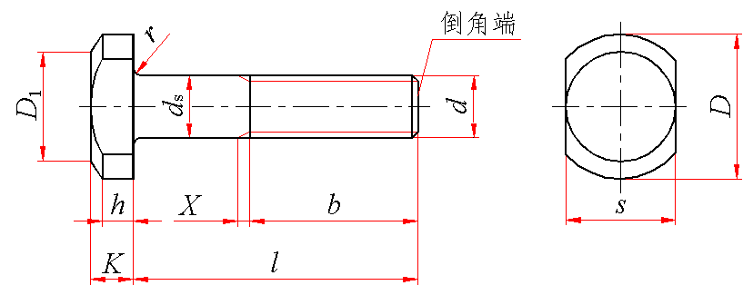 标记示例: 螺纹规格d=M10、公称长度l=100mm、性能等级为8.8级、表面氧化的T形槽用螺栓的标记: 螺栓 GB/T 37 M10×100 |