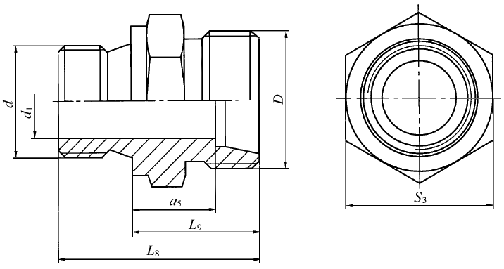 标记示例 接头系列为L,管子外径为10 mm,普通螺纹(M)F型柱端,表面镀锌处理的钢制卡套式端直通管接头标记为: 管接头 GB/T 3733 L10 接头系列为L,管子外径为10 mm,普通螺纹(M)F型柱端,表面镀锌处理的钢制卡套式端直通接头体标记为: 接头体 GB/T 3733 L10 |