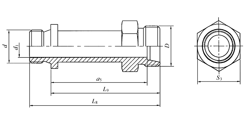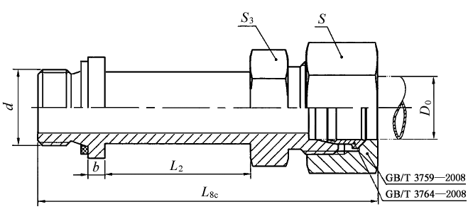 标记示例: 接头系列为L,管子外径为10 mm,普通螺纹(M)F型柱端,表面镀锌处理的钢制卡套式端直通长管接头标记为: 管接头 GB/T 3735 L10 接头系列为L,管子外径为10 mm,普通螺纹(M)F型柱端,表面镀锌处理的钢制卡套式端直通长管接头体标记为: 接头体 GB/T 3735 L10 |