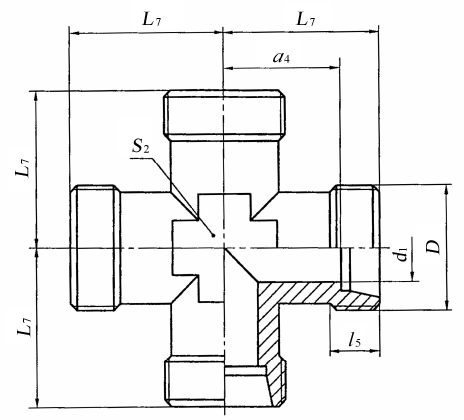 图1 卡套式四通管接头
