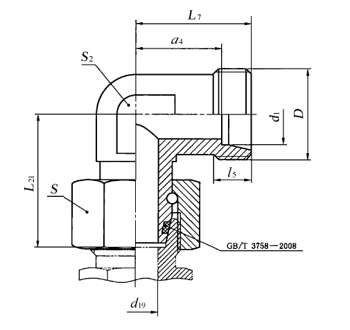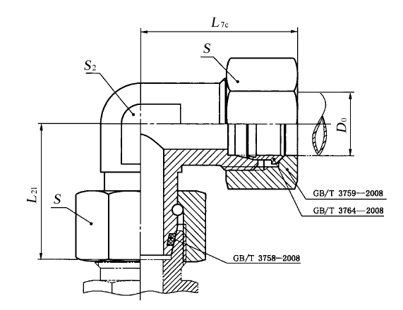 标记示例 接头系列为L,管子外径为10 mm,表面镀锌处理的钢制卡套式锥密封组合弯通管接头标记为: 管接头 GB/T 3754 L10 接头系列为L,管子外径为10 mm,表面镀锌处理的钢制卡套式锥密封组合弯通接头体标记为: 接头体 GB/T 3754 L10 |
