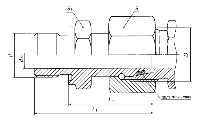 带E型柱端的卡套式锥密封组合直通管接头尺寸(摘自GB/T 3756—2008) mm |