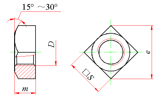 标记示例: 螺纹规格为D=M16、性能等级为5级、不经表面处理、C级的方螺母的标记: 螺母 GB 39 M16 |