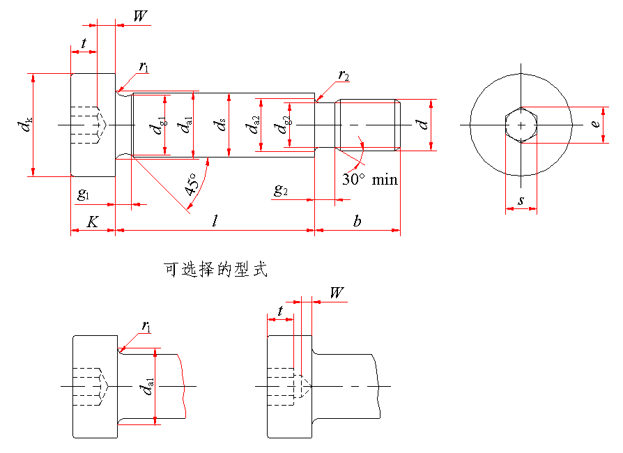 标记示例: 轴肩直径ds=10mm(螺纹规格d=M8)、公称长度l=40mm、表面氧化的内六角圆柱头轴肩螺钉的标记: 螺钉 GB/T 5281 10×40 |