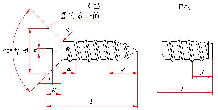 标记示例: 螺纹规格 ST3.5、公称长度l =16mm、表面镀锌钝化的 C 型开槽沉头自攻螺钉的标记: 自攻螺钉 GB 5283 ST3.5×16 |