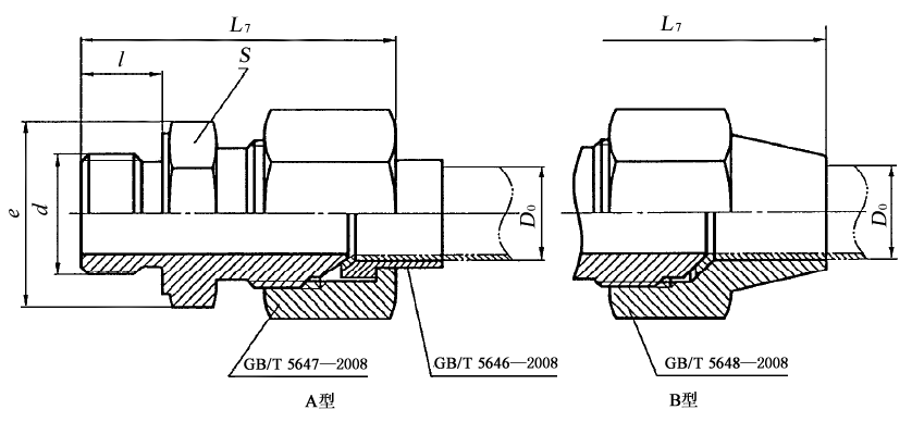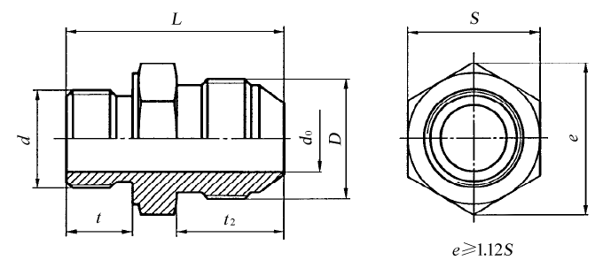 带F型柱端的扩口式端直通管接头和接头体尺寸(摘自GB/T 5625—2008) mm |