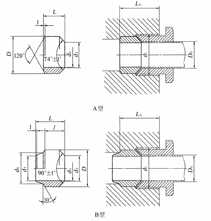 扩口式管接头用密合垫 标记示例 管子外径为10 mm,不经表面处理的钢制扩口式管接头用A型密合垫标记为: 密合垫 GB/T 5651 A10 |