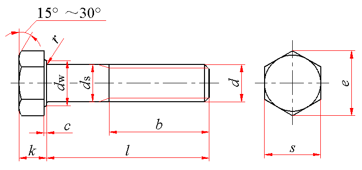 注:1.带括号的规格为非优选的螺纹规格。 2.A级用于d=1.6~24 mm和l≤10d或l≤150 mm(按较小值);B级用于d>24 mm或l>10 d或l>150 mm(按较小值)的螺栓。 3.螺纹末端应倒角,对螺纹规格≤M4可为辗制末端(GB/T 2)。 | ||||||||||||||||