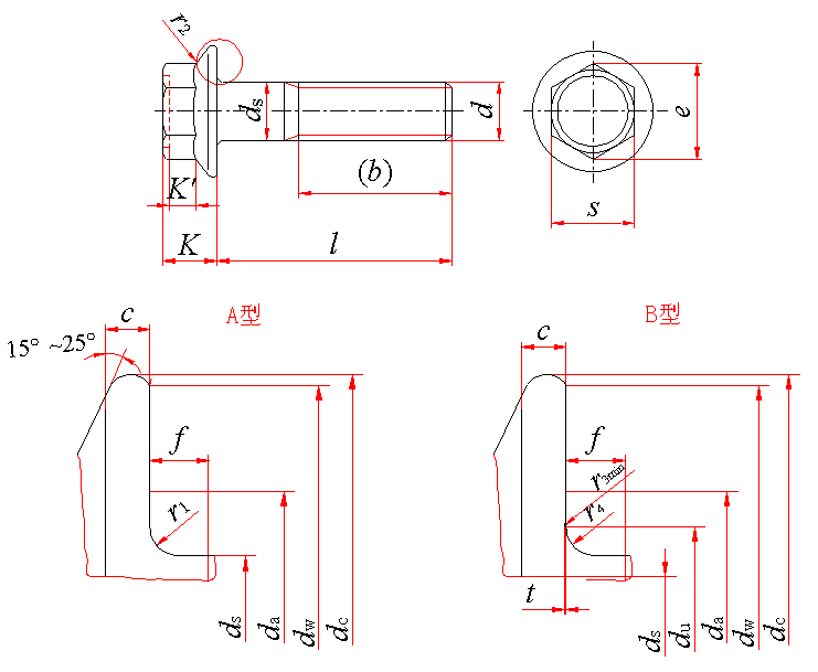 标记示例: 螺纹规格d=M12、公称长度l=80mm、性能等级为8.8级、表面氧化、细杆、A或B型的六角法兰面螺栓的标记: 螺栓 GB 5790 M12×80 螺纹规格d=M12、公称长度l=80mm、性能等级为8.8级、表面氧化、细杆、A型的六角法兰面螺栓的标记: 螺栓 GB 5790 AM12×80 |